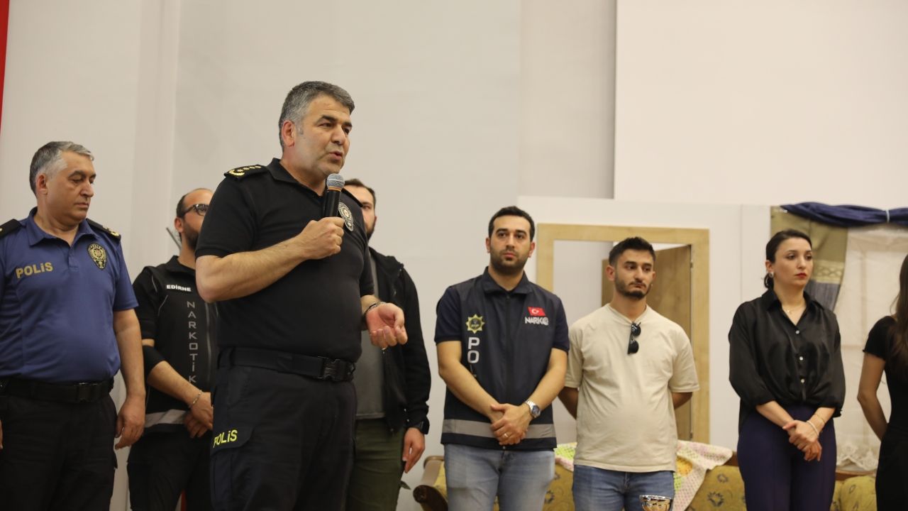 EDİRNE (AA) - Edirne Emniyet Müdürlüğünce uyuşturucuyla mücadelede ailenin rolüne dikkati çekmek amacıyla hazırlanan ve polislerin rol aldığı "Yarınlara Geç Kalmadan" adlı tiyatro oyunu, Uzunköprü'de seyirciyle buluştu.