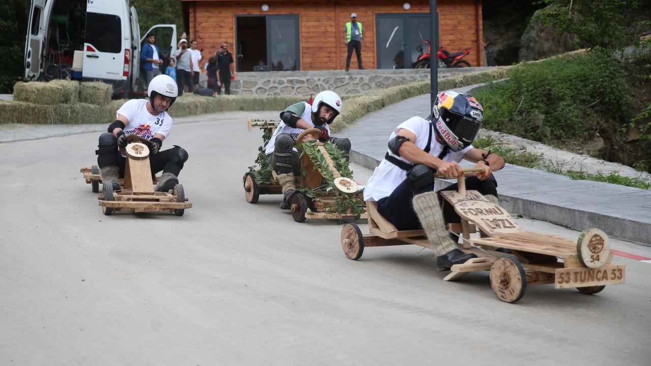 Kadınlarda 15, erkeklerde ise 45 kişinin yarıştığı organizasyonda, tahta arabaların yarışa uygunluğunun kontrolünün ardından gruplar 1000 metrelik parkurda kıyasıya mücadele etti.