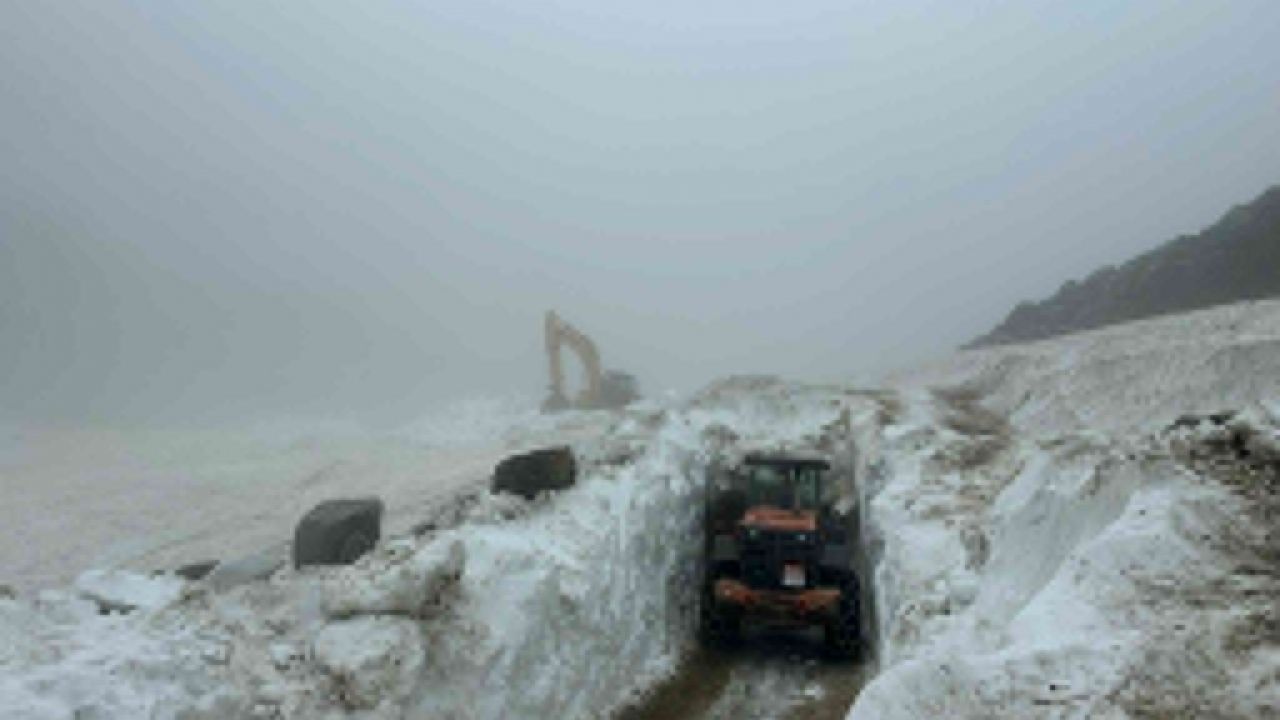 Ekipler, kar kalınlığının yer yer 2 metreye ulaştığı güzergahta iş makineleriyle yolu ulaşıma açmaya çalışıyor.