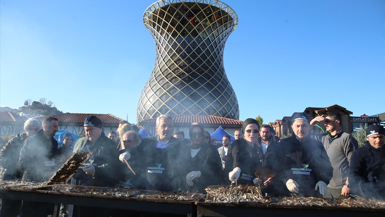 Rize Belediyesince sahil dolgu alanında organize edilen festivalde, çay çöpünden üretilen mangal kömüründe pişirilen hamsiler, katılımcıların beğenisine sunuldu.