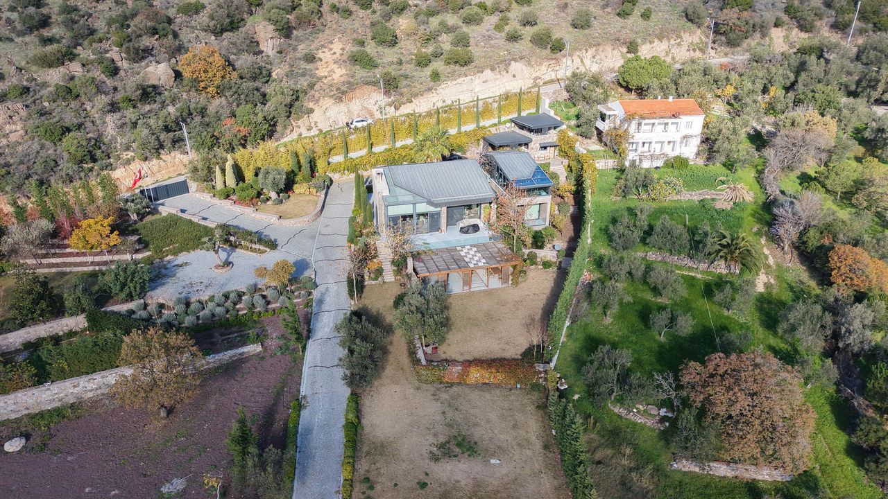'Uyuşturucu' soruşturması kapsamında ifadesinin ardından adli kontrol şartıyla serbest bırakılan Fenerbahçe Başkanı Sadettin Saran'ın, Çanakkale'nin Ayvacık ilçesine bağlı Kuruoba köyündeki villasında 21 Aralık'ta jandarma ekipleri tarafından arama yapıldı. Yapılan aramaların ardından villanın bekçisi H.D. gözaltına alındı. H.D., işlemlerinin ardından sevk edildiği adliyede çıkarıldığı mahkemede adli kontrol şartıyla serbest bırakıldı. Öte yandan Sadettin Saran'ın Kuruoba köyündeki villası, dron ile havadan görüntülendi. (DHA)