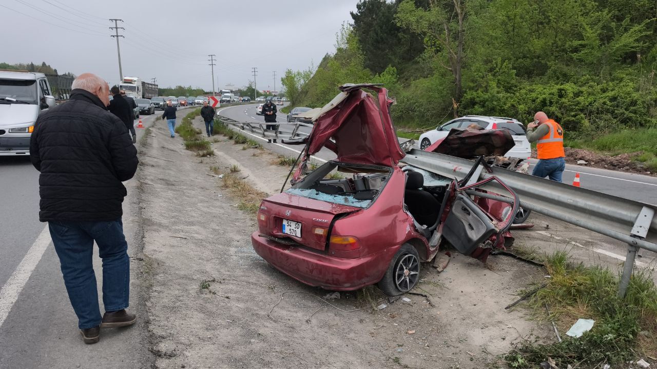 Yoldaki ulaşım kısa süreliğine kontrollü sağlandı, bariyerlere saplanan otomobil iş makineleriyle kaldırıldı.