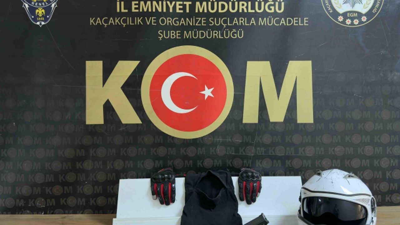 Gerçekleştirilen aramada ruhsatsız tabanca, 9 fişek, kask, yüz maskesi ve eldiven ele geçirildi.