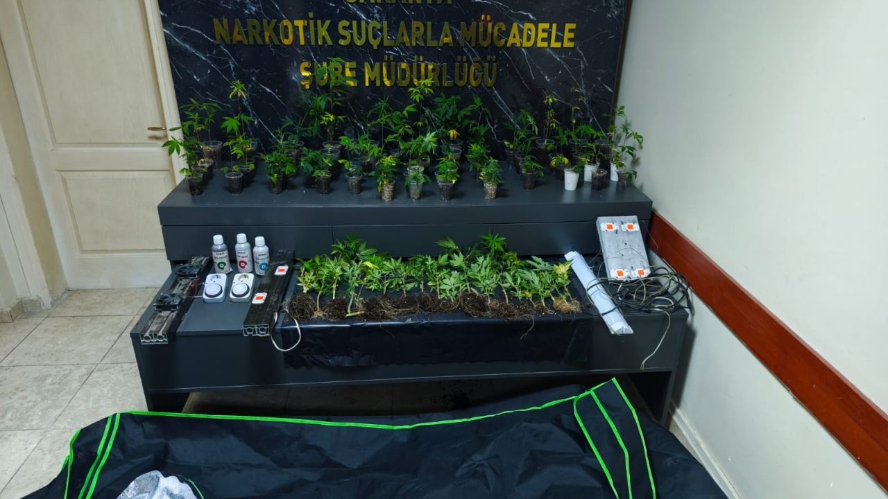 Operasyonda 5 şüphelinin üstleri ile 2 araç ve 2 adreste yapılan aramada, 29 parça halinde 5 bin 220 içimlik peçeteye emdirilmiş sentetik uyuşturucu, 500 gram sentetik uyuşturucu, 75 kök Hint keneviri, 3 aydınlatma sistemi, 2 termostat ve 1 termal çadır ele geçirildi.