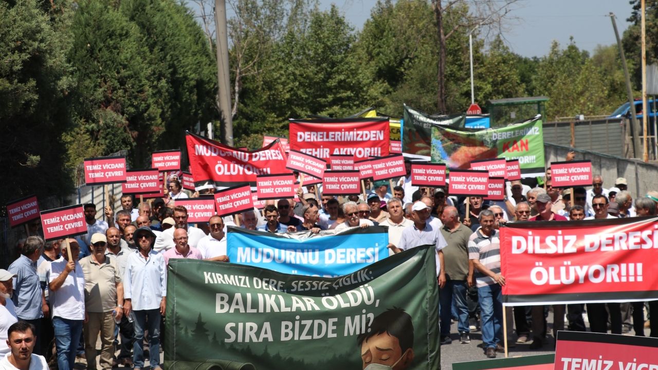 Fabrikaların önüne kadar traktörler eşliğinde düdük çalarak ve sloganlara atarak yürüyen mahalleliler, "Temiz Vicdan, Temiz Çevre" dövizleri ile "Dilsiz Deresi Ölüyor", "Mudurnu Deresi Ölüyor", "Kırmızı Dere, Sessiz Çığlık: Balıklar Öldü, Sıra Bizde mi?", "Derelerimiz Kan Ağlıyor", "Fabrikalar Zehir Saçıyor", "Karacasu Deresi Ölüyor", "Derelerimizden Zehir Akıyor", "Küçücek Deresi Ölüyor" ve "Fabrika Arıtmaları Çalışmıyor" yazılı pankartlar taşıdı.