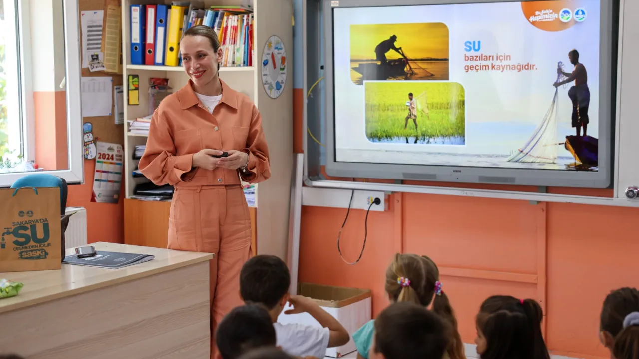 Hendek Akova İlkokulu’nda gerçekleştirilen eğitimde interaktif sunumlar ve animasyon destekli içerikler eşliğinde öğrencilere suyun doğal döngüsü, arıtma süreçleri ve evde uygulanabilecek tasarruf yöntemleri aktarıldı.