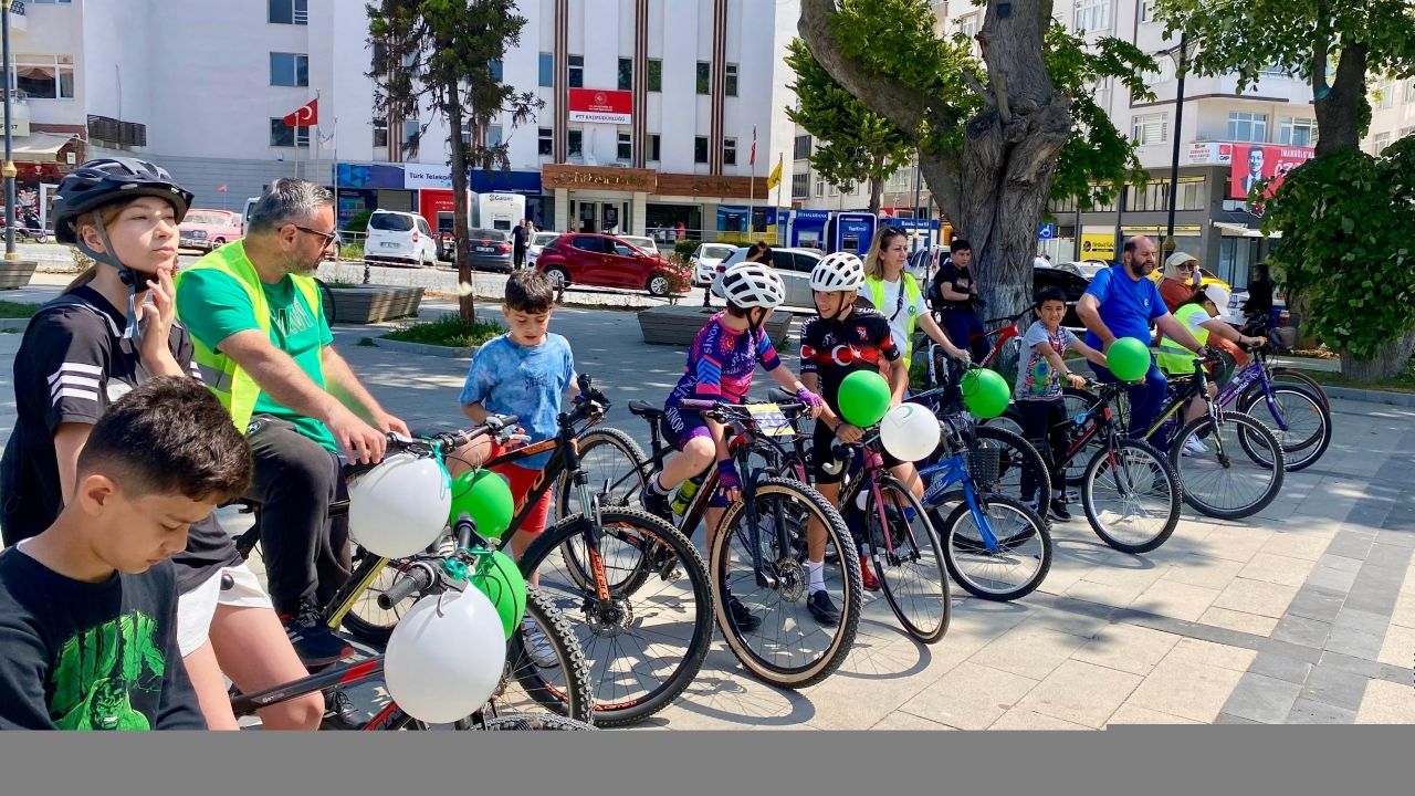 Her yaştan katılımın olduğu bisiklet turunda bisikletliler, Olukbaşı mevkisinde bulunan alışveriş merkezinin önündeki kavşaktan dönerek Cumhuriyet Meydanı'na ulaştı.