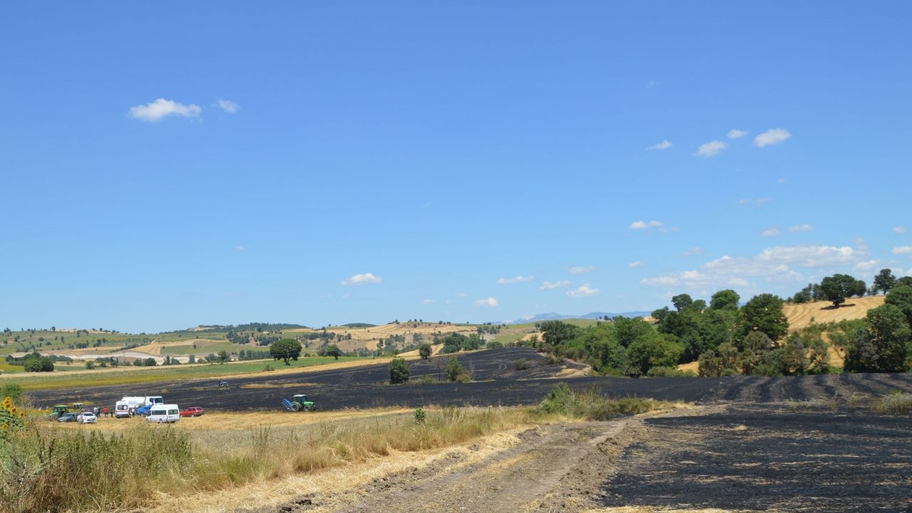 Yangında yaklaşık 40 dekar buğday ekili arazi ile 60 dekar biçilmiş olan alan zarar gördü.