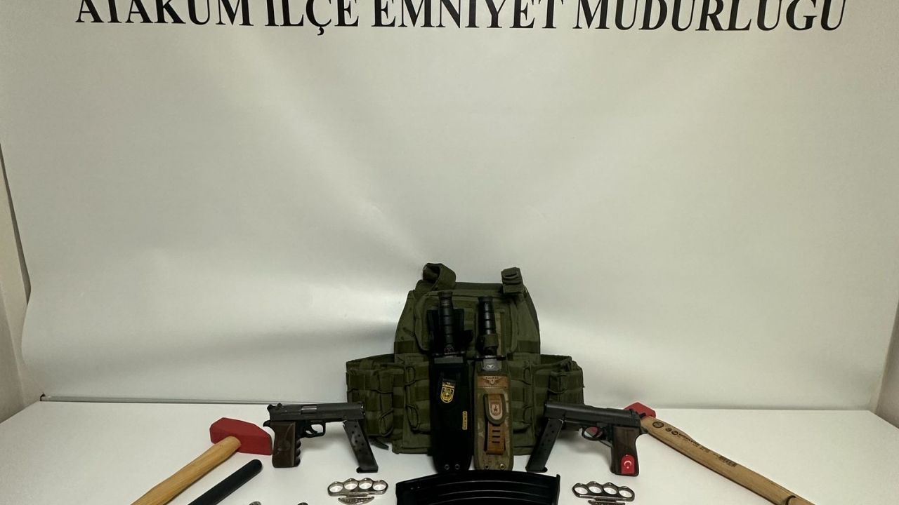 Adreste yapılan aramada, 2 ruhsatsız tabanca, 16 tabanca şarjörü, 3 tüfek şarjörü, 2 kasatura, 2 muşta, 4 kelebek tabir edilen bıçak, 123 tabanca fişeği, plastik jop, çelik yelek, balta ile ahşap saplı büyük çekiç ele geçirildi.