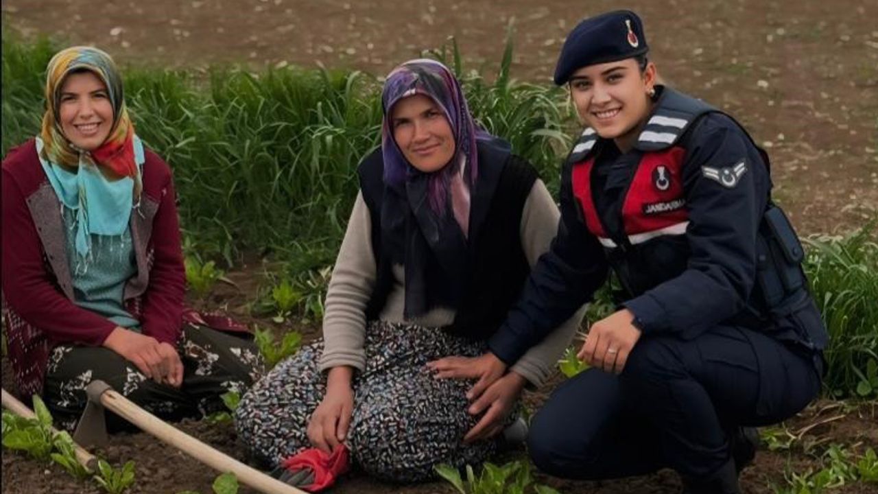 Vezirköprü İlçe Jandarma Komutanlığı ekipleri, Oruç Mahallesi'nde tarlada çalışan kadınları ziyaret etti.