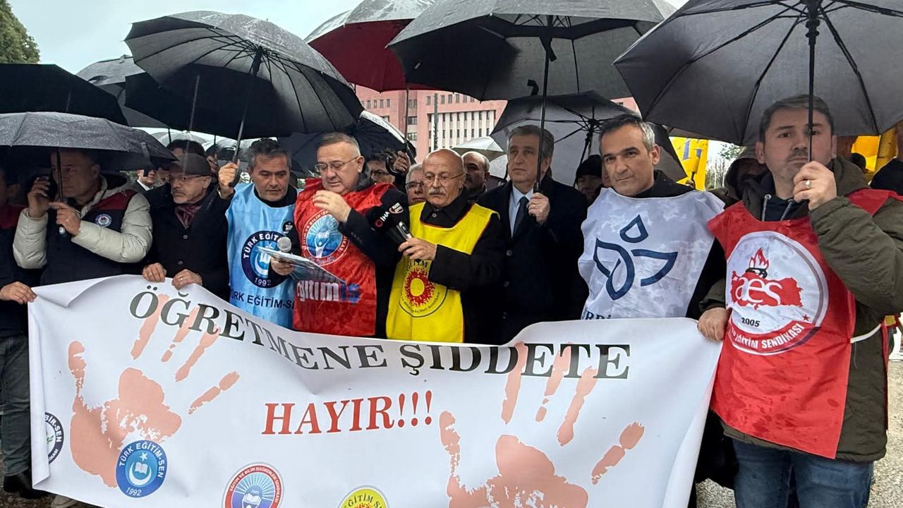 Sendikalar adına ortak açıklama yapan Eğitim İş Samsun Şube Başkanı Onur Gündüz, 'İlimizde gerçekleştirilen okul sporları müsabakaları sırasında yaşanan saldırı ve bu olayın hemen ardından başka bir okulumuzda bir velinin gerçekleştirdiği saldırı sonucu görevini yapan öğretmenlerimizin darbedilmesi, gelinen vahim tabloyu bir kez daha gözler önüne sermiştir. Öğretmene atılan her yumruk, yalnızca bir eğitim emekçisine değil; eğitime, kamu hizmetine ve toplumsal barışa yönelmiş açık bir şiddet eylemidir. Bugün gelinen noktada öğretmenlerimizin okulda, spor salonunda, sahada kısacası hiçbir yerde can güvenliği kalmamıştır. Öğretmeni koruyamayan bu sistem, aynı zamanda öğrencileri de koruyamamaktadır. Olayın yaşandığı gün futbol sahasında yeterli güvenlik ve sağlık önlemlerinin alınmadığı, öğrencilerin ve öğretmenlerin göz göre göre tehlikeye atıldığı aşikardır. Müsabaka sırasında yapılan ahlak dışı tezahüratlara göz yumulması, herhangi bir önleyici müdahalede bulunulmaması, bu saldırılara adeta zemin hazırlamıştır. Bizler, tüm sendikalar olarak şiddetin her türlüsüne karşıyız. Bu saldırıların faillerinin derhal tespit edilmesini, ihmali bulunan herkes hakkında idari ve adli süreçlerin gecikmeksizin başlatılmasını; Öğretmenlik Meslek Kanunu ile Ortaöğretim Disiplin Yönetmeliği'nde gerekli düzenlemelerin yapılmasını talep ediyoruz. Bu olayın takipçisi olacağız' dedi. (DHA)