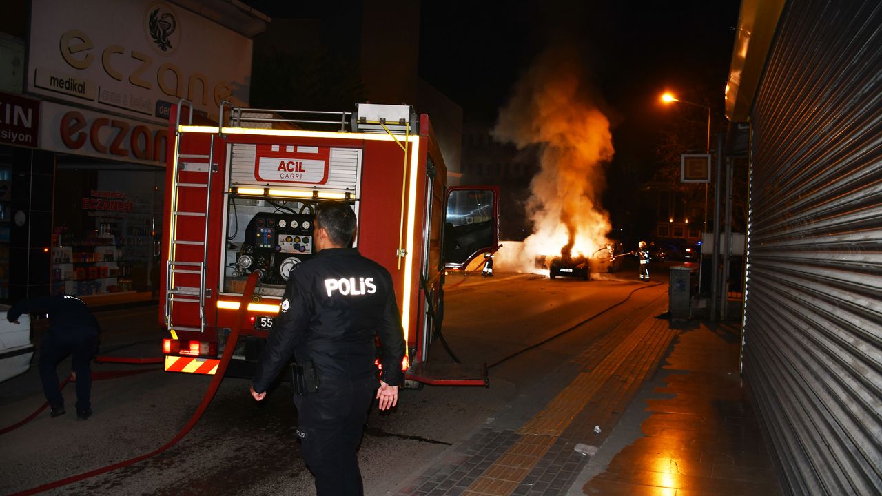 İtfaiye görevlilerince söndürülen yangında otomobil kullanılamaz hale geldi.