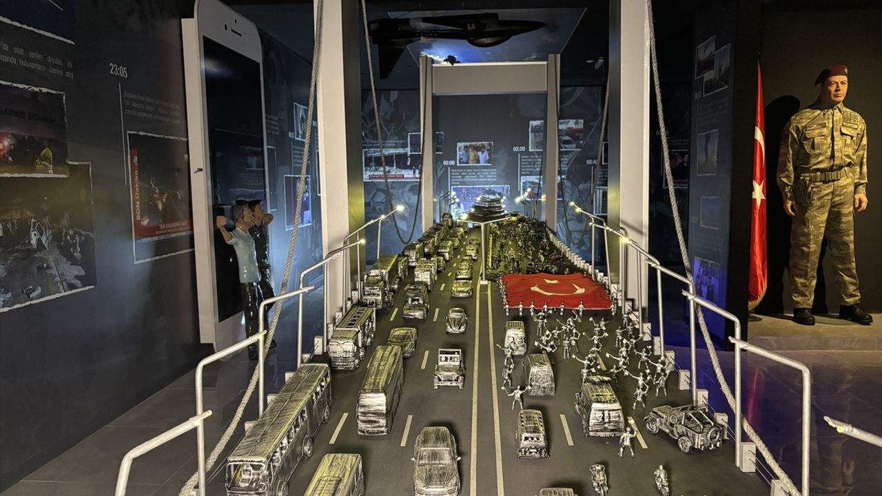 Darbe ve muhtıraların gazete manşetlerindeki yansımalarının da yer aldığı sergide, 15 Temmuz darbe girişimi sırasında 34 kişinin şehit edildiği 15 Temmuz Şehitler Köprüsü'nde halkın darbecilere karşı direnişi de minyatür objelerle canlandırılıyor.