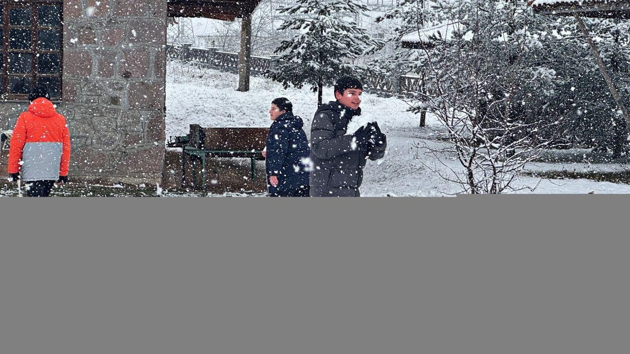 Samsun merkezden Ladik Ambarköy Açık Hava Müzesi'ne gezi düzenleyen Mimar Sinan Ortaokulu öğrencileri ise karla doyasıya eğlendi.