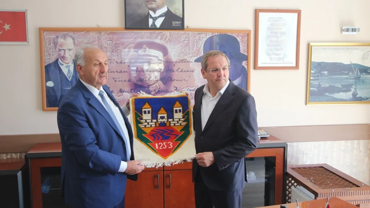 Ayvalık Belediye Başkanı Mesut Ergin’in davetiyle Türkiye’ye gelen Sırbistan Sancak Bölgesi şehirlerinden Sjenica Belediye Başkanı Munib Mujagiç, Ayvalık’ta bir dizi ziyarette bulundu.BALIKESİR (İGFA) - Başkan Mujagiç, ilk olarak Ayvalık Belediye Başkanı Mesut Ergin’i makamında ziyaret etti.