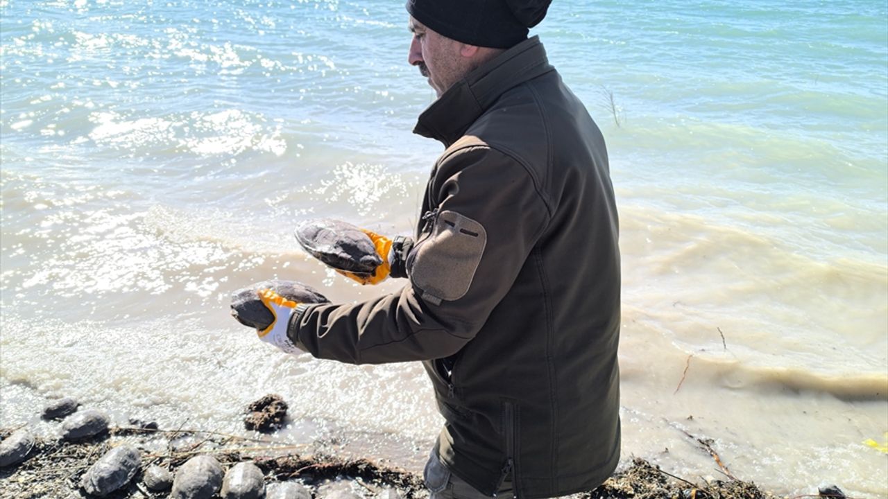 Veteriner hekim tarafından kontrolleri yapılan kaplumbağalar, ekipler tarafından Atatürk Barajı Göleti kıyısına bırakıldı.