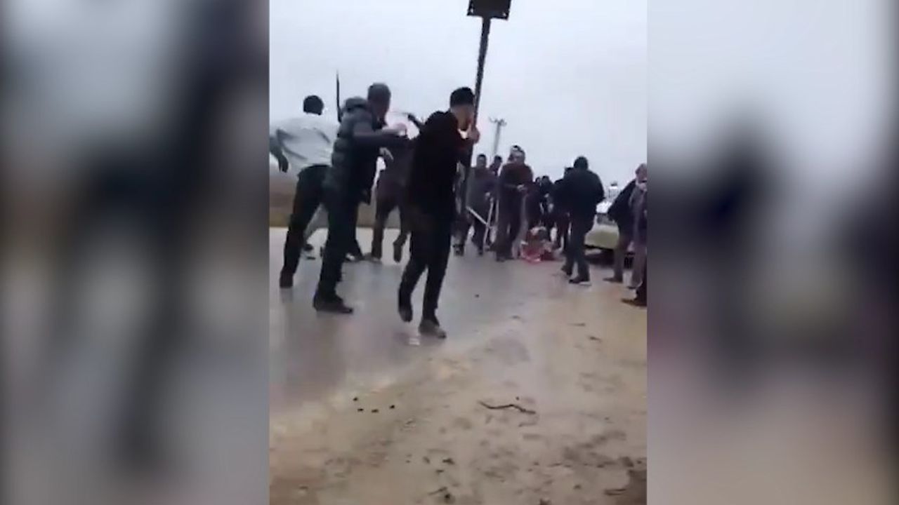 Ali LEYLAK/ŞANLIURFA, (DHA)- ŞANLIURFA'nın Akçakale ilçesinde, aynı mahallede yaşayan iki grup arasında arazi anlaşmazlığı nedeniyle çıkan taş, sopa ve kürekli kavga, cep telefonuyla görüntülendi. Kavgada 7 kişi yaralandı.