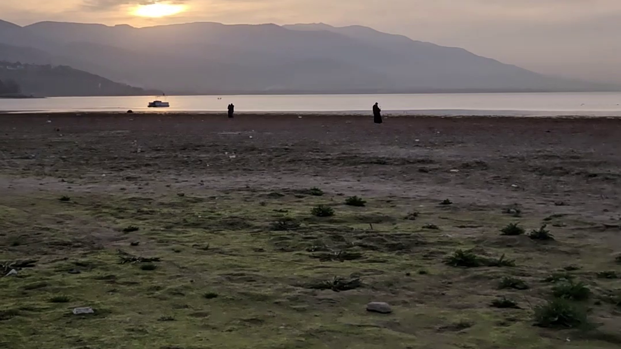 Serhat YILMAZ/ ARİFİYE(Sakarya), (DHA)- SAKARYA'da bulunan Sapanca Gölü'nde su seviyesi gözle görülür şekilde azalırken, bir vatandaş cep telefonuyla suların çekildiği alanda yürüyen ve mangal yapan kişileri görüntüledi.