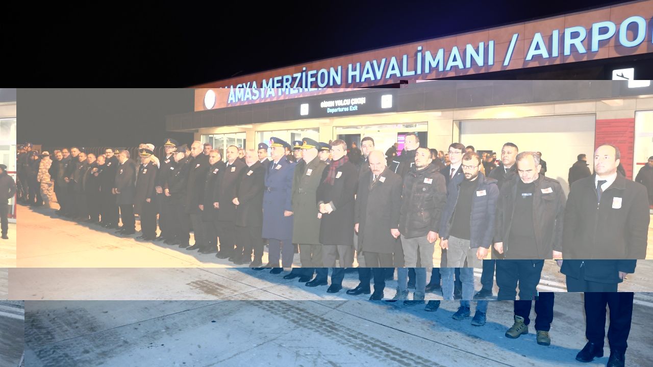 Şehidin Türk bayrağına sarılı tabutunu taşıyan askeri uçak, Amasya Merzifon Havalimanı'na indi.