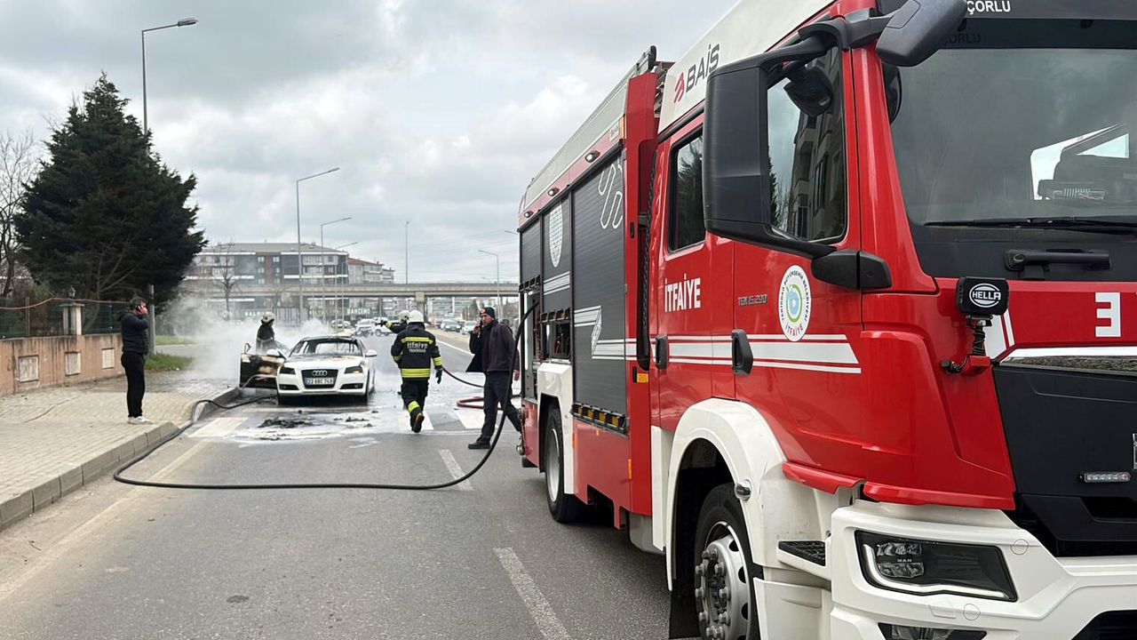 Mehmetcan ARSLAN/ÇORLU (Tekirdağ), (DHA)-TEKİRDAĞ'ın Çorlu ilçesinde seyir sırasında alev alan otomobil kullanılamaz hale geldi, sürücüsü son anda kurtuldu.