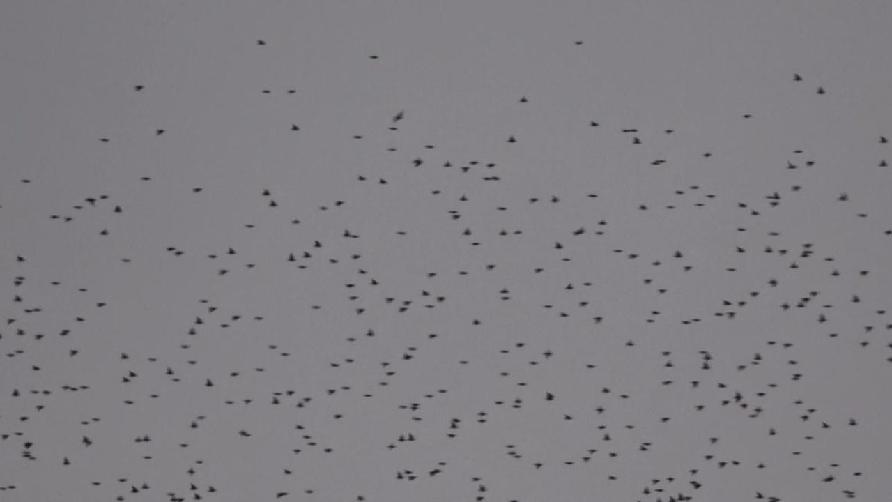 Yeşilhisar ilçesi Fevzioğlu Mahallesi'nde akşam saatlerinde, binlerce sığırcık kuşu görüldü. Gökyüzünde görsel şölen oluşturan kuşların birbirleriyle uyum halinde aynı yöne uçmaları, görenlerin ilgisini çekti. Sığırcık kuşlarının o anları, cep telefonu kamerasıyla kaydedildi. (DHA)