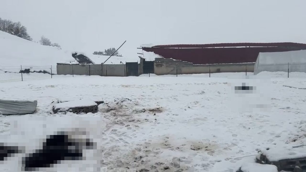Olay, saat 02.00 sıralarında Veyselkarani beldesi Atatürk Mahallesi'nde Mehmet Emin Arıtürk'e ait çiftlikte meydana geldi. Üzerlerinde biriken karın ağırlığıyla bitişik 3 ahırın çatısı çöktü. Çökme sırasında ahırlardaki küçükbaş hayvanlar enkaz altında kaldı. Yaklaşık 600 küçükbaşın bulunduğu ahırlarda göçük altında kalan çok sayıda hayvanın öldüğü belirtildi. Ahırda bulunan 2 traktör ve 1 kamyonetin de kullanılamaz hale geldiği öğrenildi. İhbar üzerine bölgeye sevk edilen ekipler, hasar tespit çalışması başlattı. Mehmet Emin Arıtürk, zararın büyük olduğunu belirterek yetkililerden destek beklediklerini söyledi. (DHA)