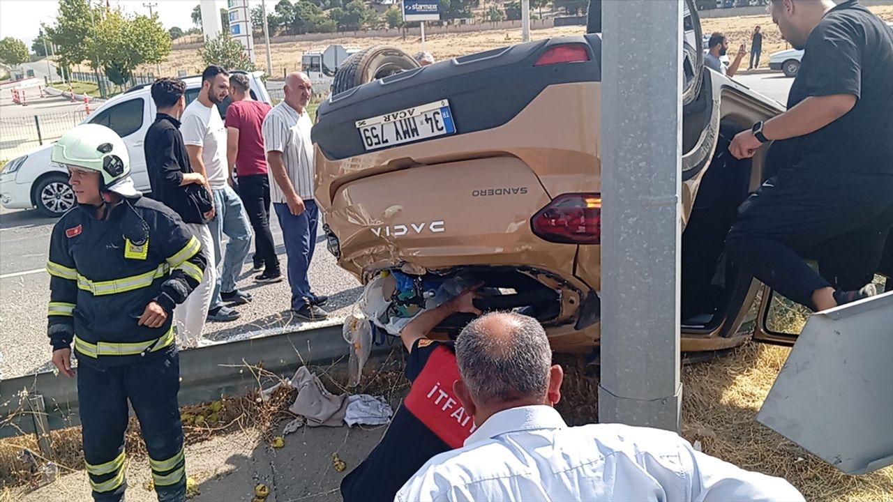 Çarpışmanın etkisiyle devrilen otomobildeki 2 kişi yaralandı.