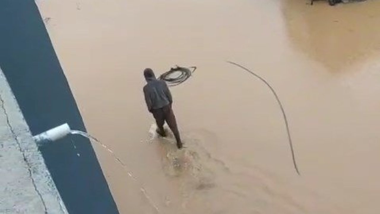 Bölgede suların tahliyesi için çalışma başlatıldı. (DHA)