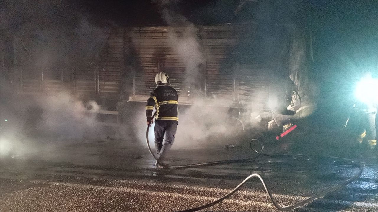 İ.P. idaresindeki 46 ZD 401 plakalı buğday yüklü tır, Siirt-Veyselkarani kara yolunda seyir halindeyken alev aldı.