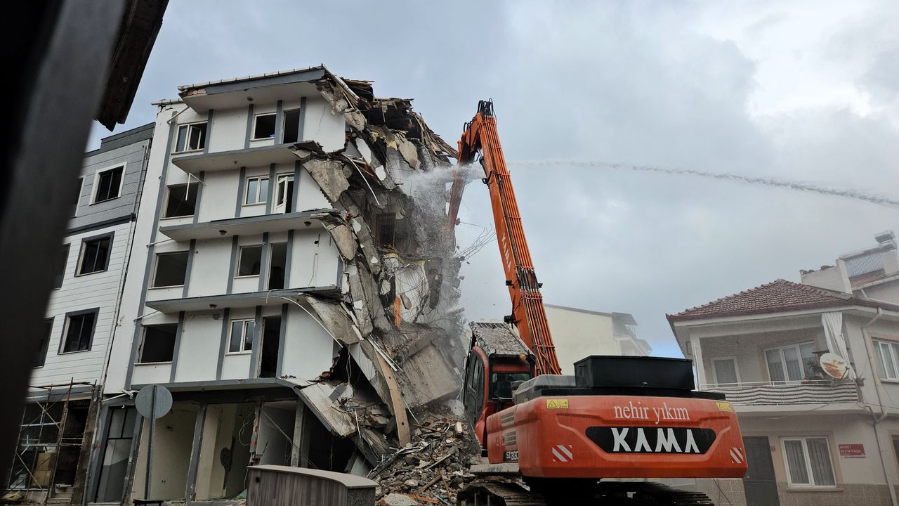 İlçe merkezindeki Camicedit, Kurtuluş ve Camikebir mahallelerinde bulunan 2, 3, 4 ve 5 katlı yapılardan oluşan 8 bina daha kontrollü şekilde yıkıldı.