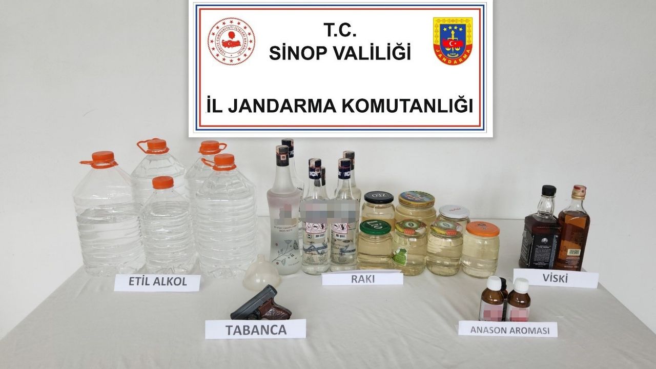 Bu kapsamda merkez ilçede bir adreste ekiplerce yapılan aramada 20 litre etil alkol, 10 litre sahte içki, içki yapımında kullanılan aroma kiti ile bir ruhsatsız tabanca ele geçirildi.
