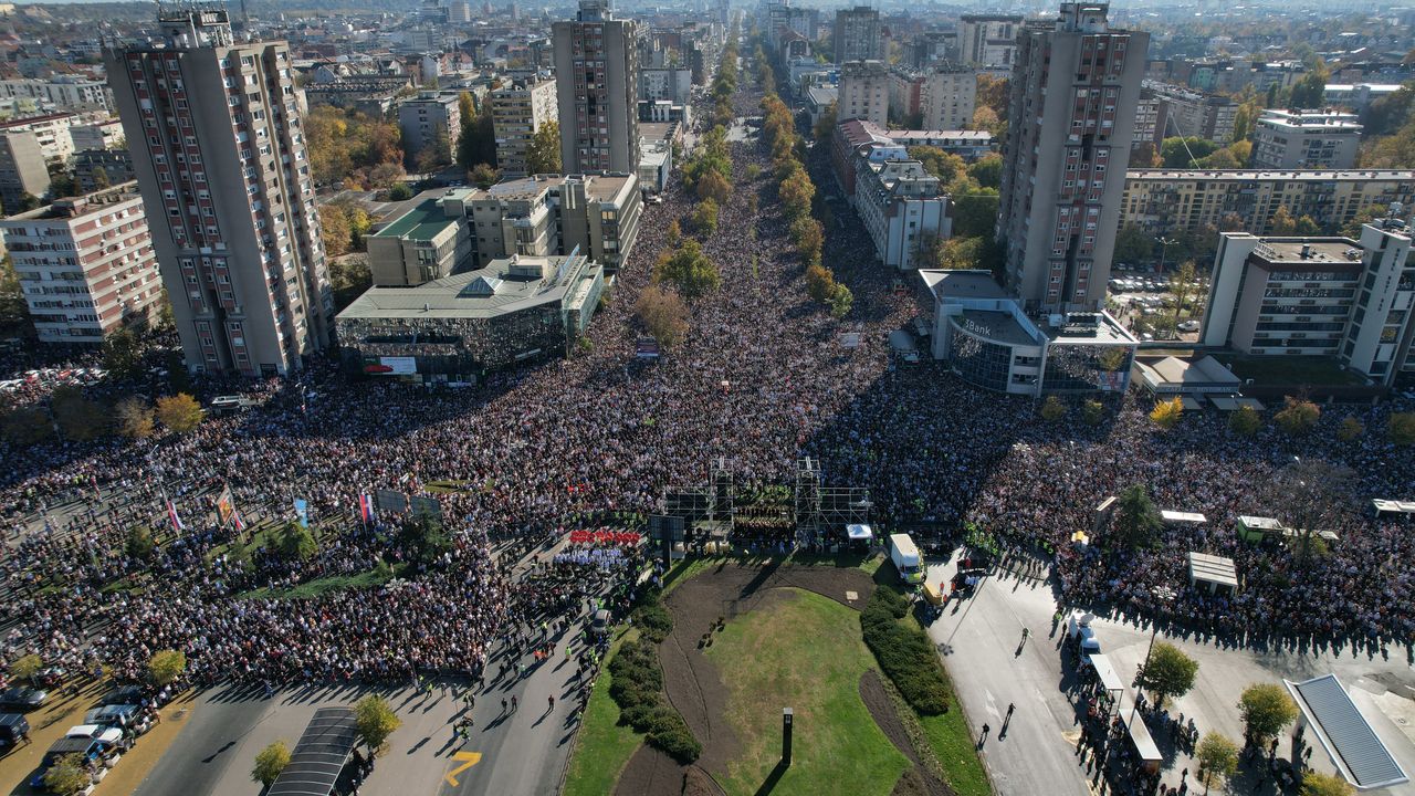 Novi Sad'daki tren istasyonunda beton sundurmanın çökmesi sonucu hayatını kaybeden 16 kişiyi anmak ve hükümete tepki göstermek isteyen on binlerce kişi kente geldi.