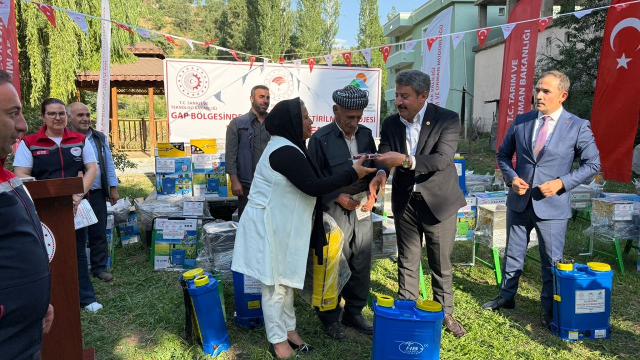 Konuşmaların ardından üreticilere, üzüm sıkma makinesi, budama makası ve pülverizatör dağıtıldı.