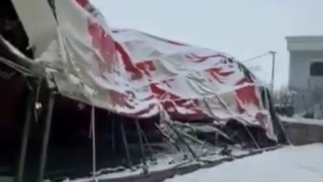 Şırnak'ta etkili olan kar yağışıyla Kumçatı beldesinde bir halı sahanın brandası üzerinde biriken karın ağırlığına dayanamayarak çöktü. Brandanın çökmesi sırasında halı sahanın altında kimsenin olmadığı öğrenilirken, halı saha kullanılamaz hale geldi.