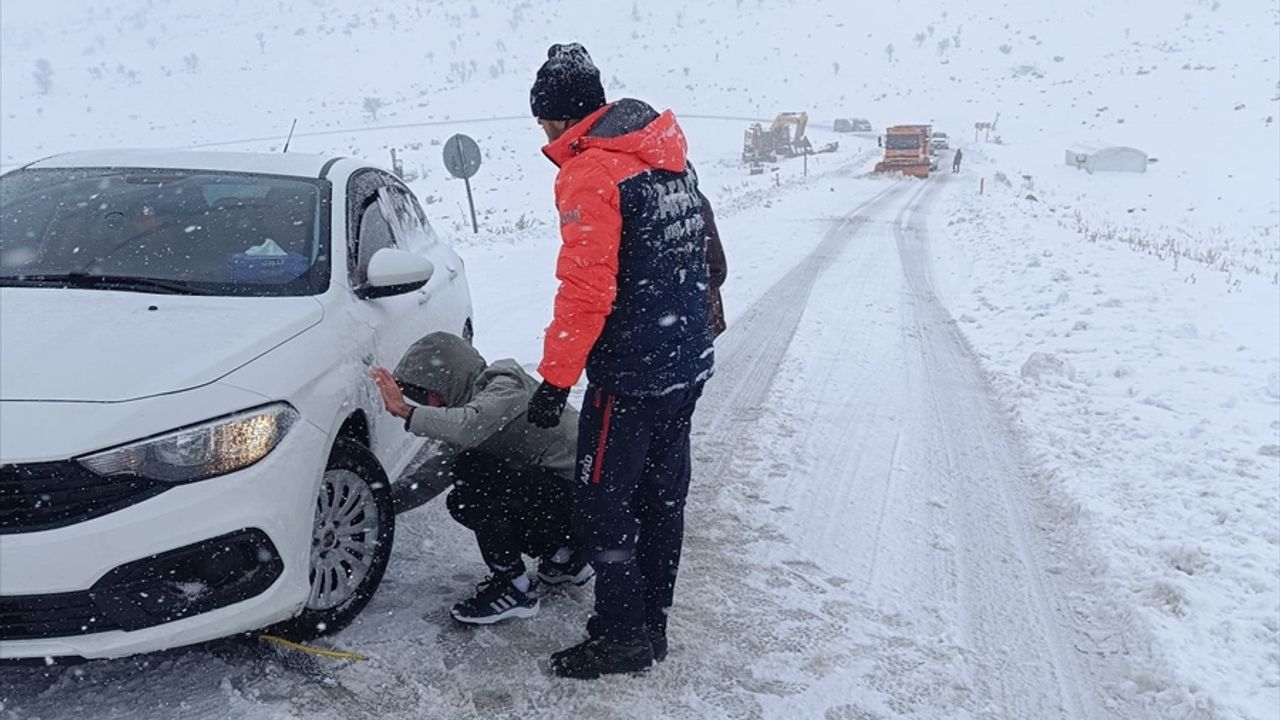 ŞIRNAK (AA) - Şırnak'ta etkili olan kar yağışı nedeniyle yolda mahsur kalanlar ekiplerin çalışmasıyla kurtarıldı.
