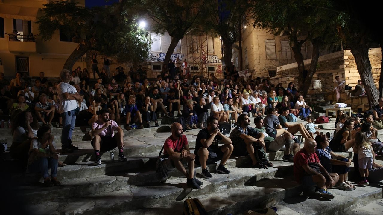 Gösterim, yarın Siros Adası'ndan Gazze'ye yola çıkacak filonun gönüllüleri ve destekçilerinin de aralarında bulunduğu çok sayıda kişinin katılımıyla gerçekleştirildi.