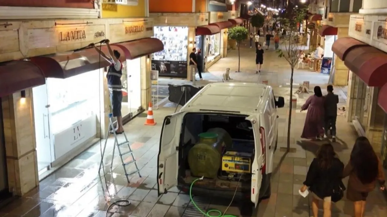 Rengarenk görünümü ve modern yapısıyla göz kamaştıran cadde, sık sık tentelerine kadar detaylı temizleniyor.
