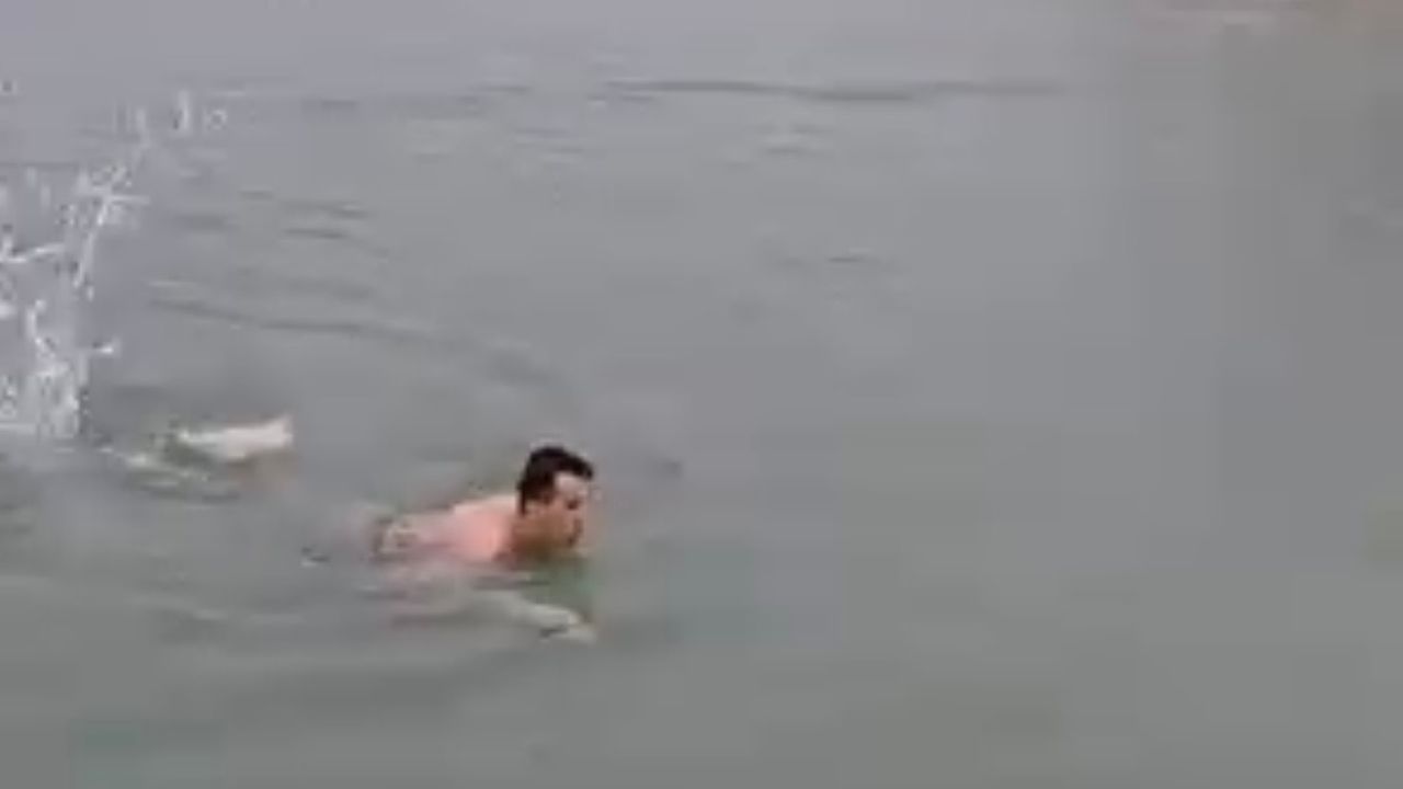 Türkiye'nin birçok yerinde yağışlı ve soğuk hava etkili olurken, dün Bartın'da hava sıcaklığı 17 dereceye kadar yükseldi. İlçede yaşayan Ceyhun Kuşçu, liman bölgesinde denize girip yüzdü. Deniz suyu sıcaklığının 11 derece ölçüldüğü ilçede, Kuşçu bir süre yüzdükten sonra denizden çıktı. O anlar, vatandaşlar tarafından cep telefonu ile görüntülendi. (DHA)