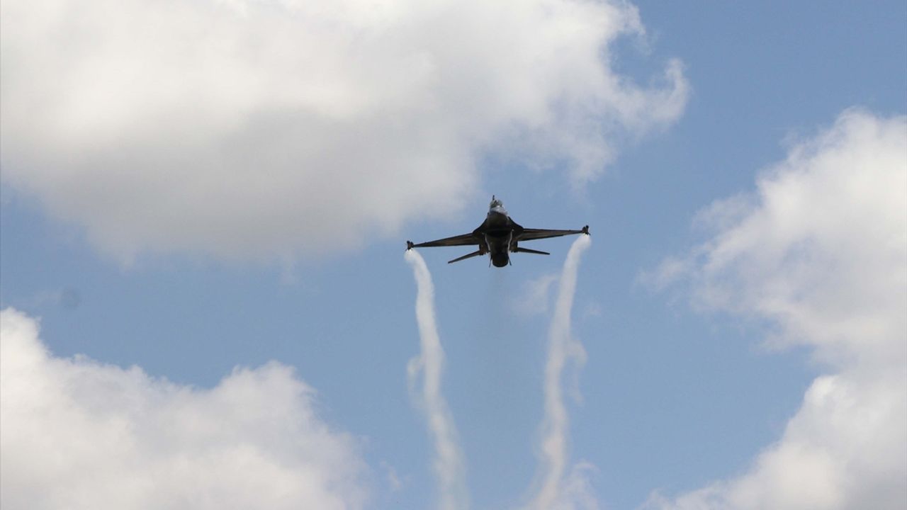 Üniversiteevi önünde toplanan öğrenciler, SOLOTÜRK'ün F-16 uçağıyla yaptığı gösteriyi ilgiyle izledi.