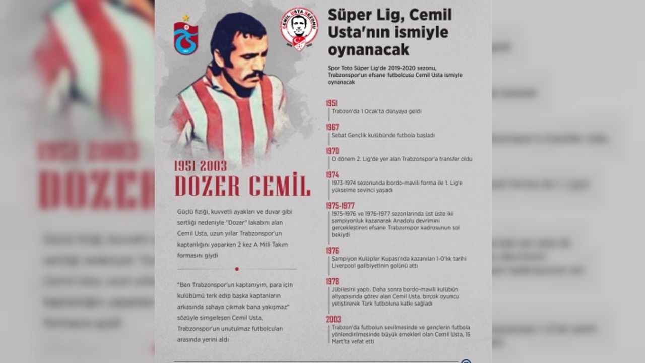 İSTANBUL (AA) - Spor Toto Süper Lig'de 2019-2020 sezonu, "Dozer" lakaplı Trabzonspor'un efsane futbolcusu Cemil Usta ismiyle oynanacak.