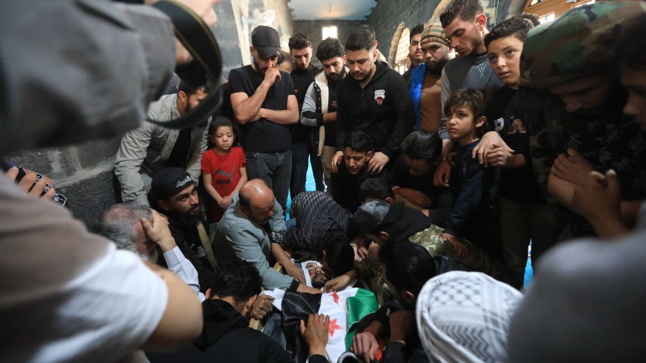 DERA (AA) - Suriye'nin güneyindeki Dera ilinde, İsrail saldırılarında yaşamını yitirenlerin cenazeleri defnedildi.