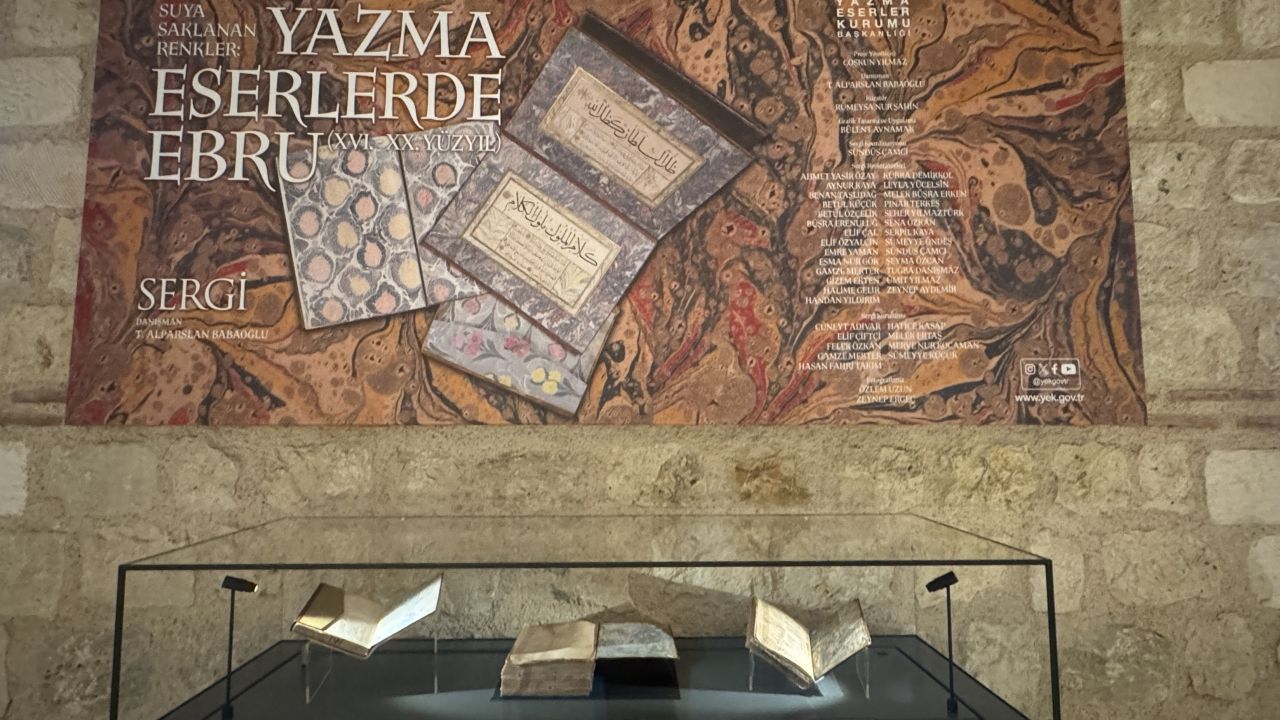 İSTANBUL (AA) - Türkiye Yazma Eserler Kurumu Başkanlığınca düzenlenen "Suya Saklanan Renkler: Yazma Eserlerde Ebru" sergisi Rami Kütüphanesi'nde beğeniye sunuldu.