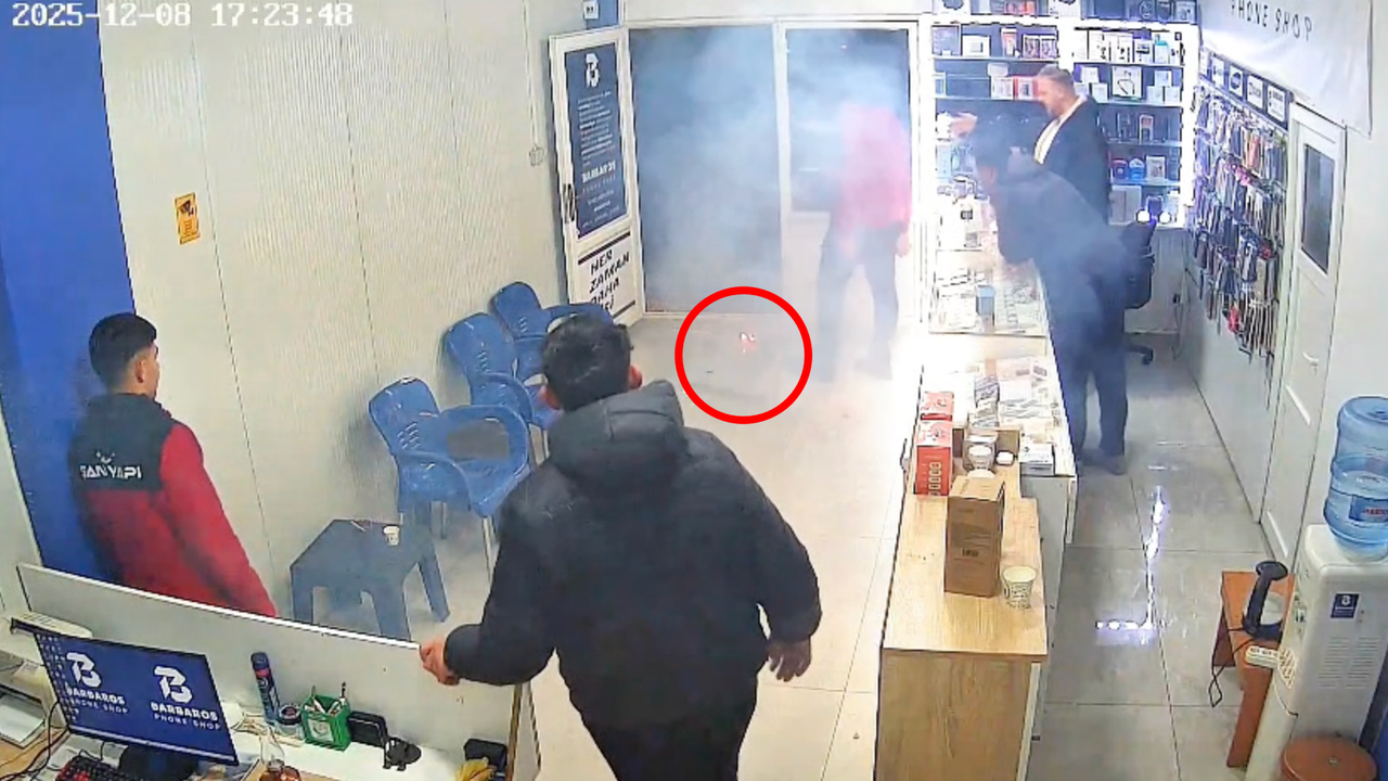 Olay, akşam saatlerinde Midyat ilçesi merkez Yeni Mahalle'de bulunan bir işyerinde meydana geldi. İşyerine tamir için getirilen cep telefonunun bataryası, tamir ustası Zeynel Abidin Ertaş tarafından incelendiği sırada patlayarak alev aldı. Ertaş, telefonu işyerinden uzaklaştırmaya çalışırken, içerisi dumanla kaplandı. Olayda yaralanan olmazken, o anlar işyerinin güvenlik kamerasına yansıdı. (DHA)