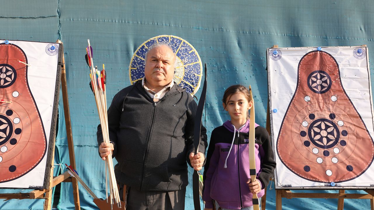 Nuray UZATMAZ-Ahmet ATMACA/GAZİANTEP, (DHA)- GAZİANTEP'te Mustafa Öztuzcu (61), izlediği tarih dizilerinden etkilenen kızı Nisa Öztuzcu'yu (9), okçuluk kursuna yazdırdı. Bir süre sonra Nisa'nın eğitmenlerinin tavsiyesi üzerine baba Öztuzcu da kursa kayıt yaptırdı. Baba-kız 6 aydır kursta ok atıyor.