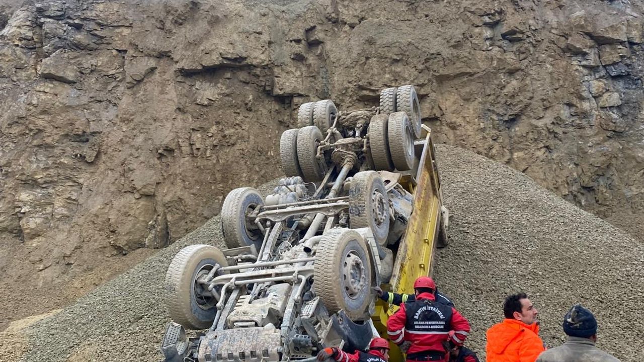 Ayhan ACAR/BARTIN, (DHA)- BARTIN'da, taş ocağı sahasında hafriyat dökümü yaparken devrilen kamyonun şoförü Fahrettin Tombul (63) hayatını kaybetti.