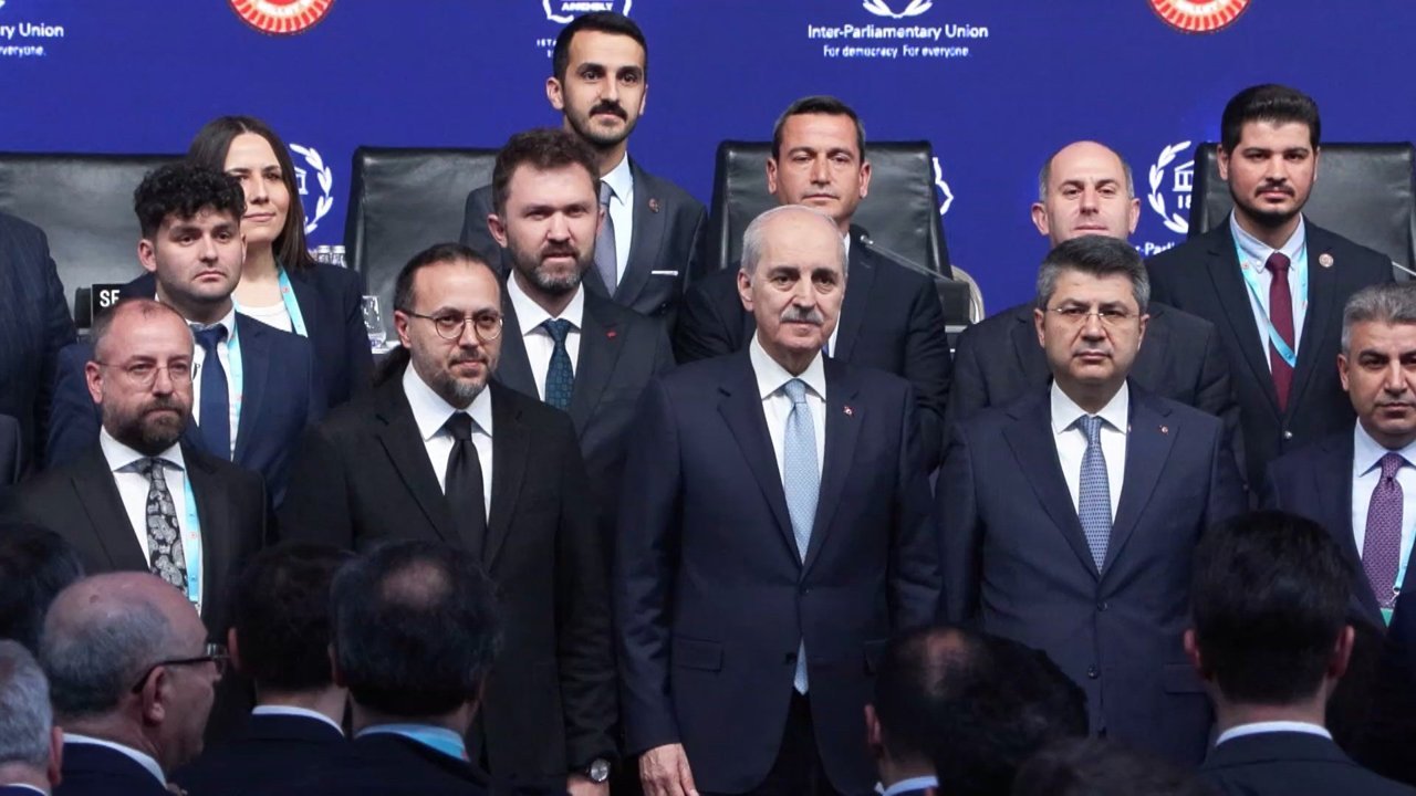 TBMM'nin ev sahipliğinde İstanbul'da düzenlenen Parlamentolar Arası Birlik (PAB) 152'nci Genel Kurulu'na Türkiye Büyük Millet Meclisi (TBMM) Başkanı Numan Kurtulmuş katıldı. Kurtulmuş, Parlamentolar Arası Birlik (PAB) 152'nci Genel Kurulu kapsamında katılımcılarla bir araya gelip aile fotoğrafı çektirdi. (DHA)