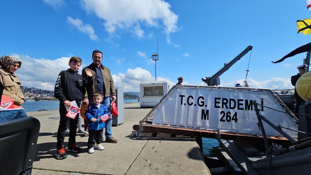 Ali Sencer ARSLAN-Sinan KABATEPE/EREĞLİ, (Zonguldak), (DHA)- ZONGULDAK'ın Ereğli ilçesinde 23 Nisan Ulusal Egemenlik ve Çocuk Bayramı kutlamaları kapsamında TCG Erdemli Mayın Avlama gemisi, ziyarete açıldı.