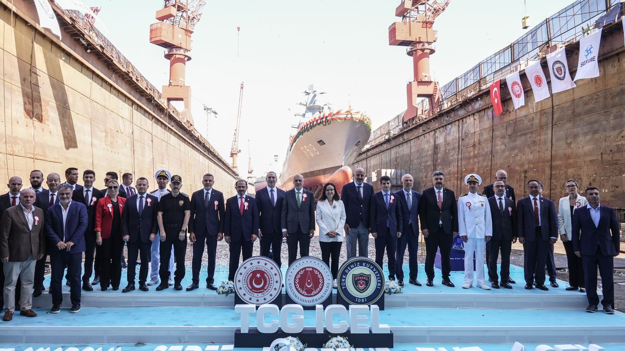 YALOVA (AA) - 'Mavi vatan'da Türk Deniz Kuvvetlerinin gücüne güç katacak MİLGEM 6-12'nci İstif Sınıfı Fırkateynlerin Tedariki Projesi kapsamında inşa edilen 8'inci gemi TCG İçel'in (F-518) denize indirme töreni Sefine Tersanesi'nde yapıldı.