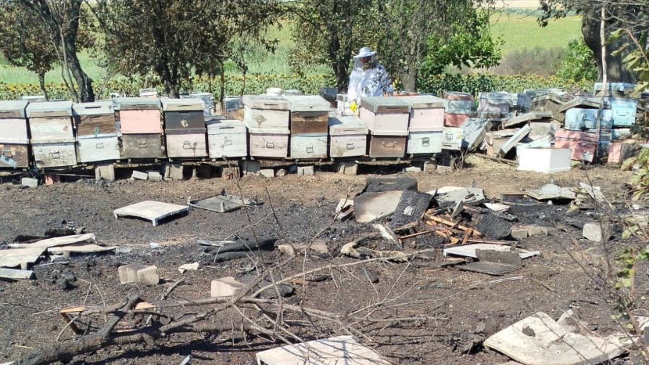 TEKİRDAĞ (AA) - Tekirdağ’ın Hayrabolu ilçesinde çıkan anız yangınında 400 arı kovanı zarar gördü.