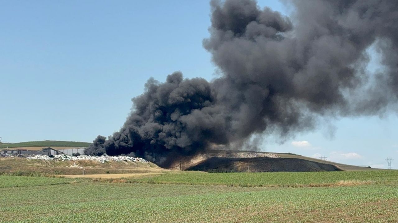 Tekirdağ yolu Karatepe mevkisinde bulunan enerji ve geri dönüşüm firmasına ait çöp depolama alanında henüz belirlenemeyen nedenle yangın çıktı.